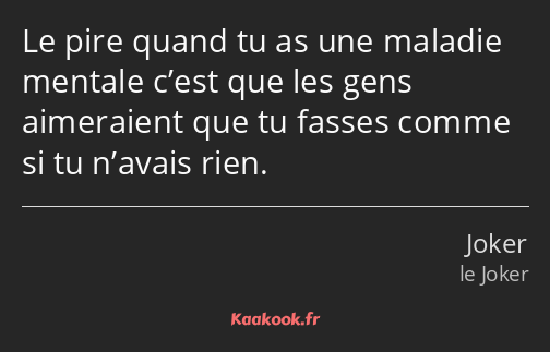 Le Pire Quand Tu As Une Maladie Mentale C Est Que Les Gens Aimeraient Que Tu Fasses Comme Si Tu N Avais Rien Joker Ma Citation Com