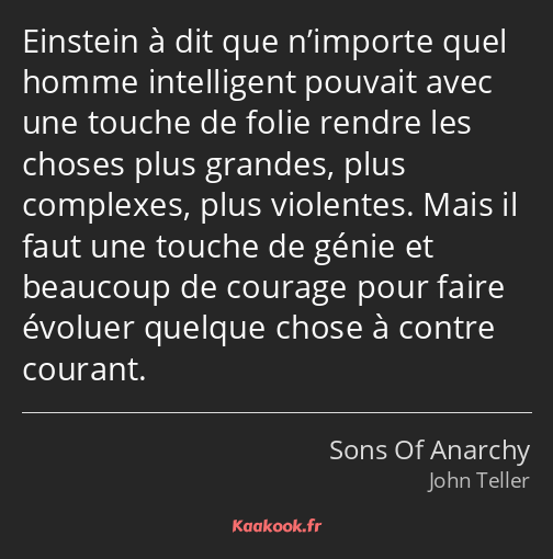 Citation sons of anarchy. Citation william shakespeare sons of anarchy. 54 épingles 6 abonnés. Storyline Sons of Anarchy aka SAMCRO is a motorcycle club that operates both illegal and legal businesses in the small town of Charming.