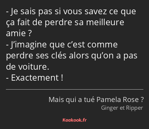 Tout Ce Que Je Sais C Est Que Je Viens De Perdre La Meilleure Amie Que J Ai Jamais Eus Et Ca Ca Ne Vaut Pas Tout